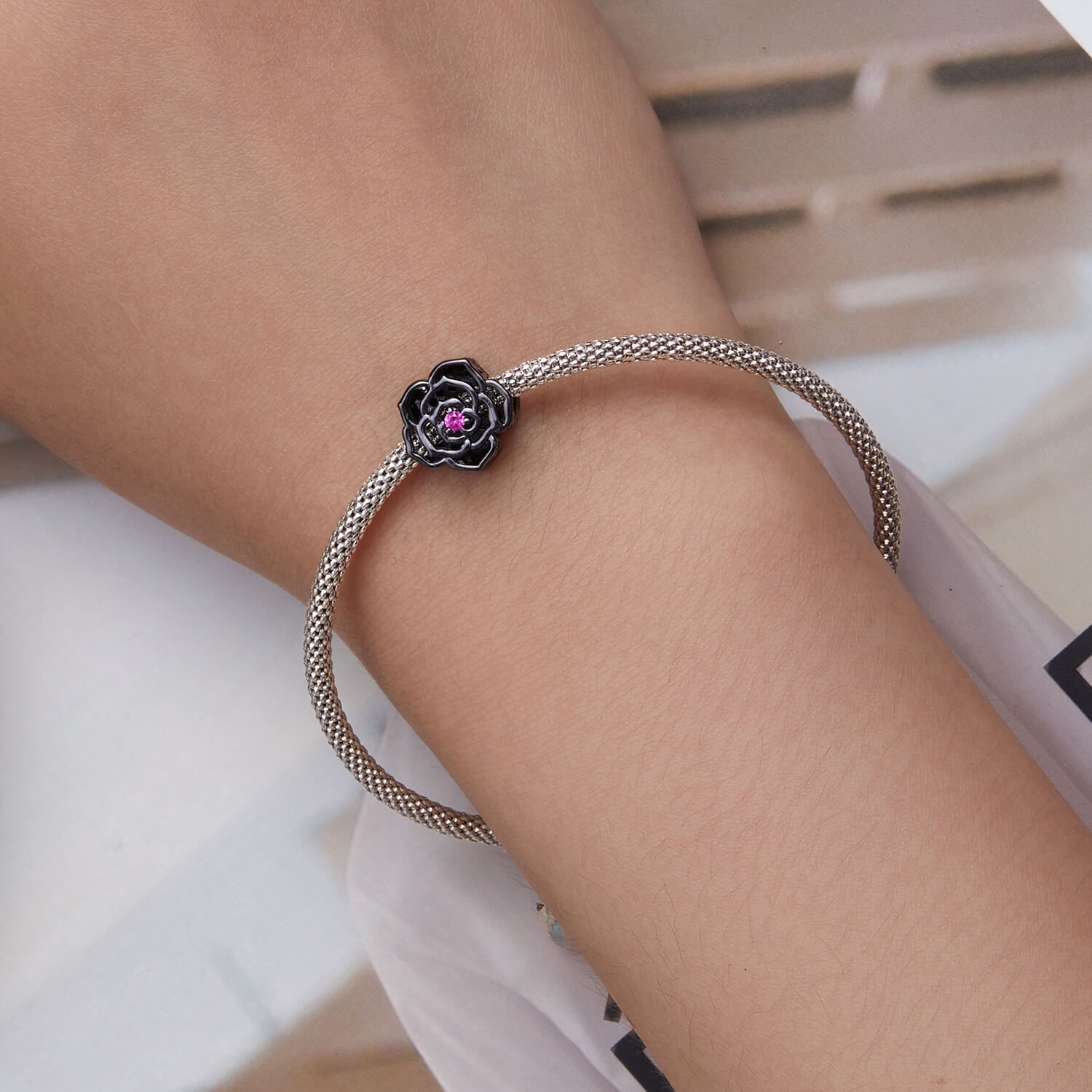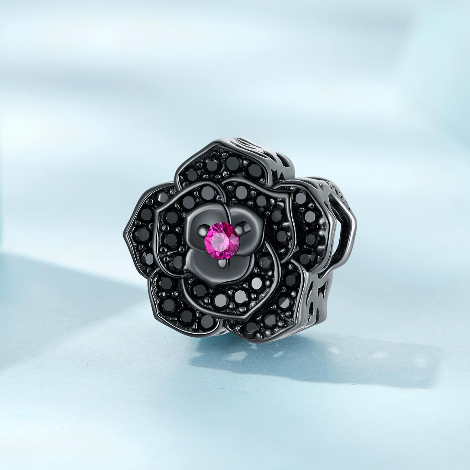 925 Ezüst charm – Fekete virág
