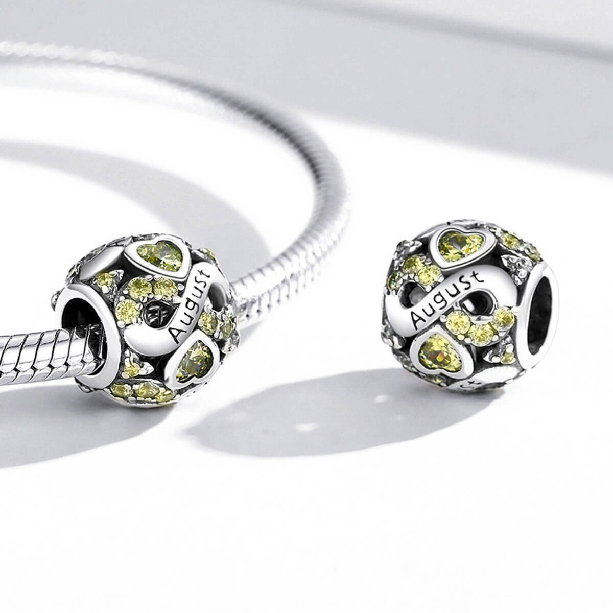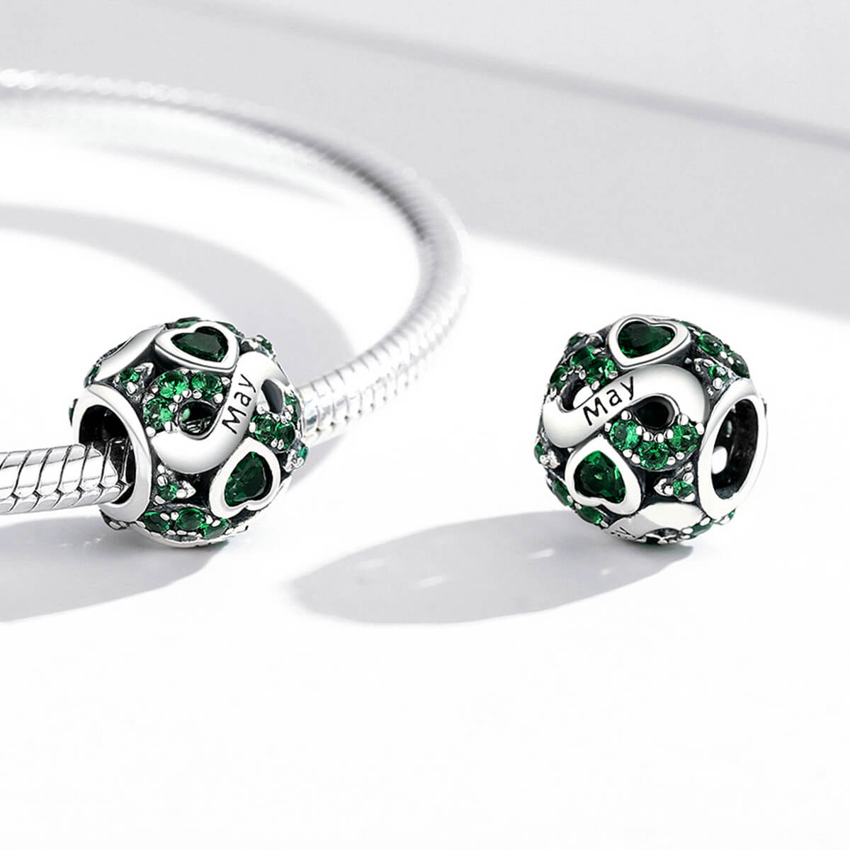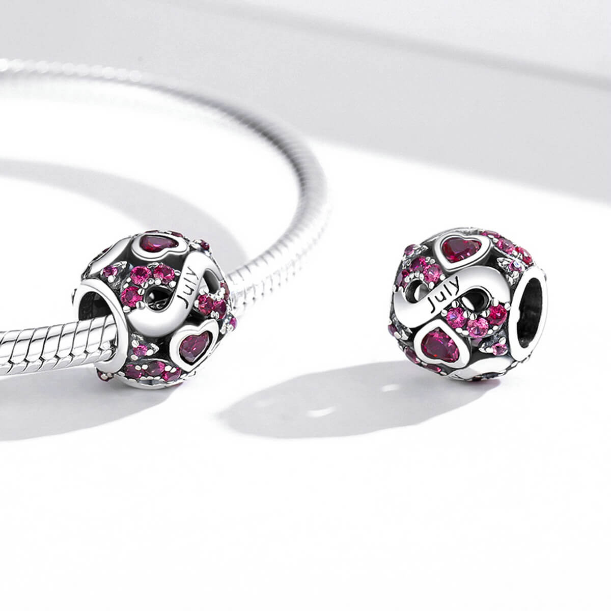 Válassz a születési hónapodnak megfelelő charmot. Gyönyörű színes cirkónia kristályokkal van díszítve. Tökéletes kiegészítője lehet charm karkötődnek.