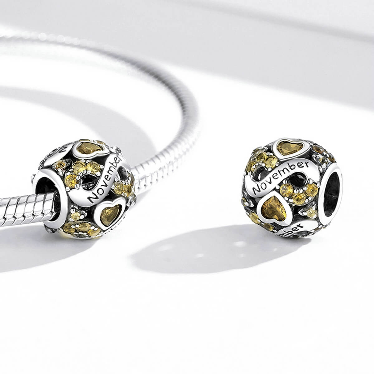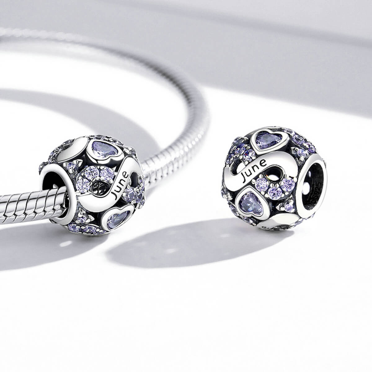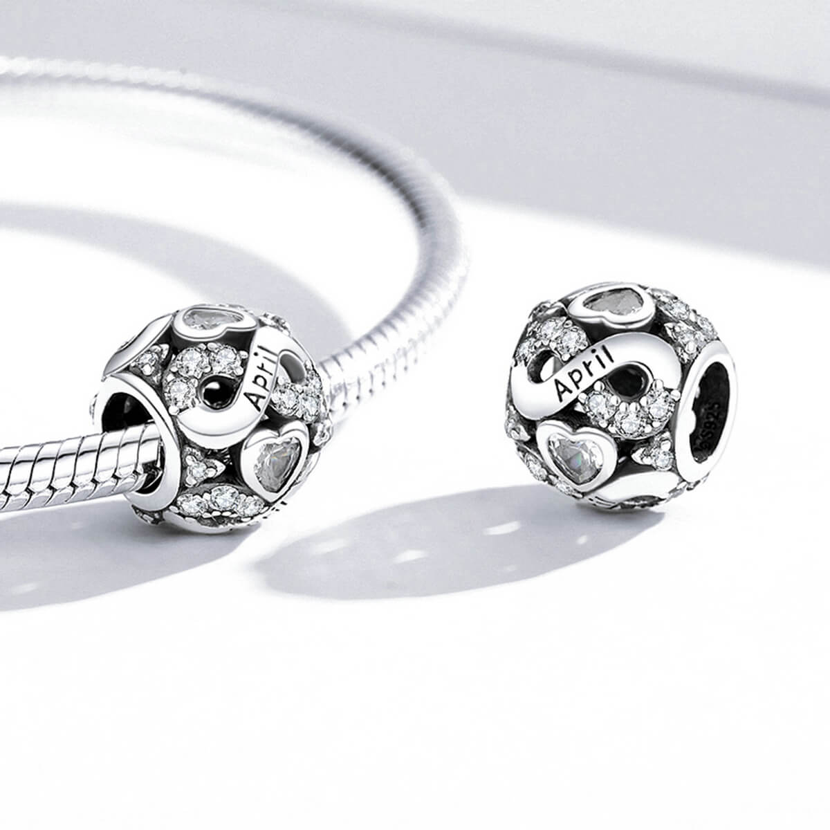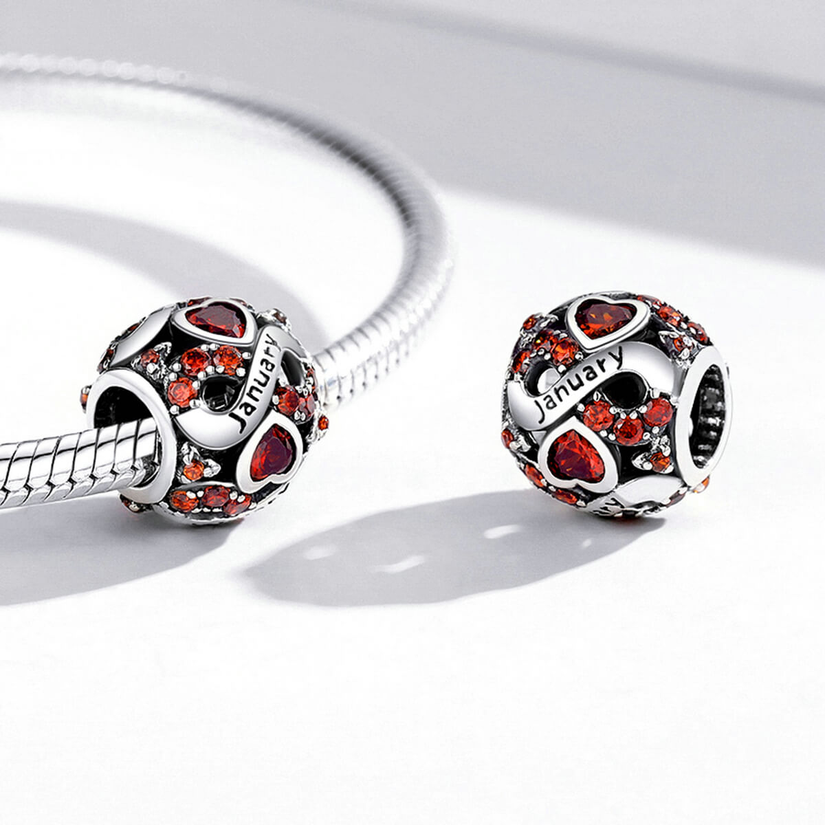 Válassz a születési hónapodnak megfelelő charmot. Gyönyörű színes cirkónia kristályokkal van díszítve. Tökéletes kiegészítője lehet charm karkötődnek.
