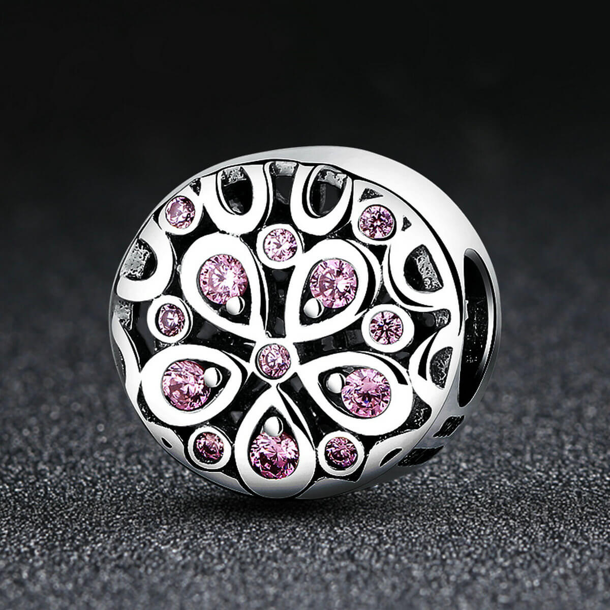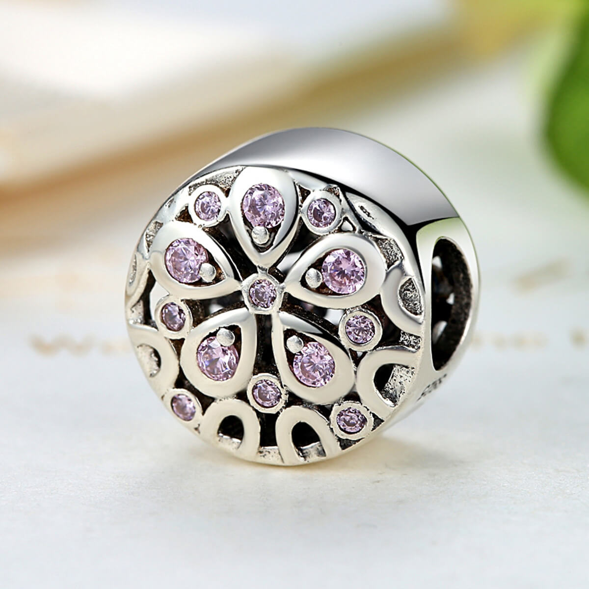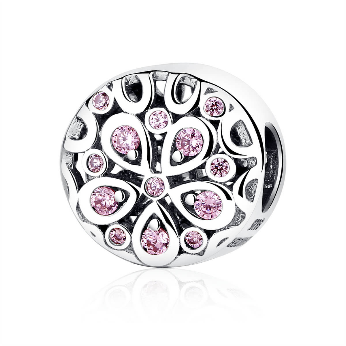 Különleges virág különleges rózsaszín cirkónia kristályokkal. Tökéletes kiegészítője lehet charm karkötődnek.