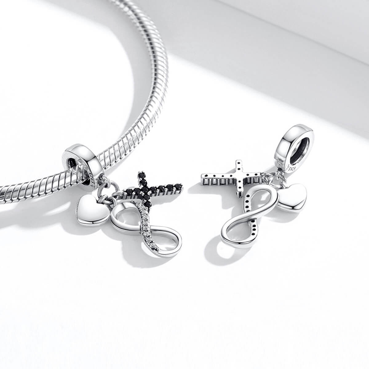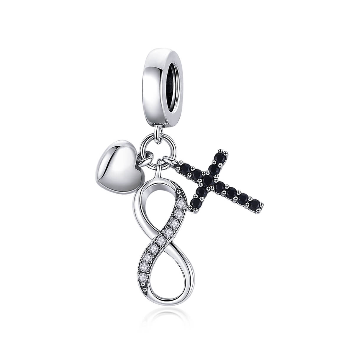 Hitet, végtelenséget és szeretetet szimbolizál. Cirkónia kristályokkal díszítve. Nyakláncon és charm karkötőn is viselhető ékszer.