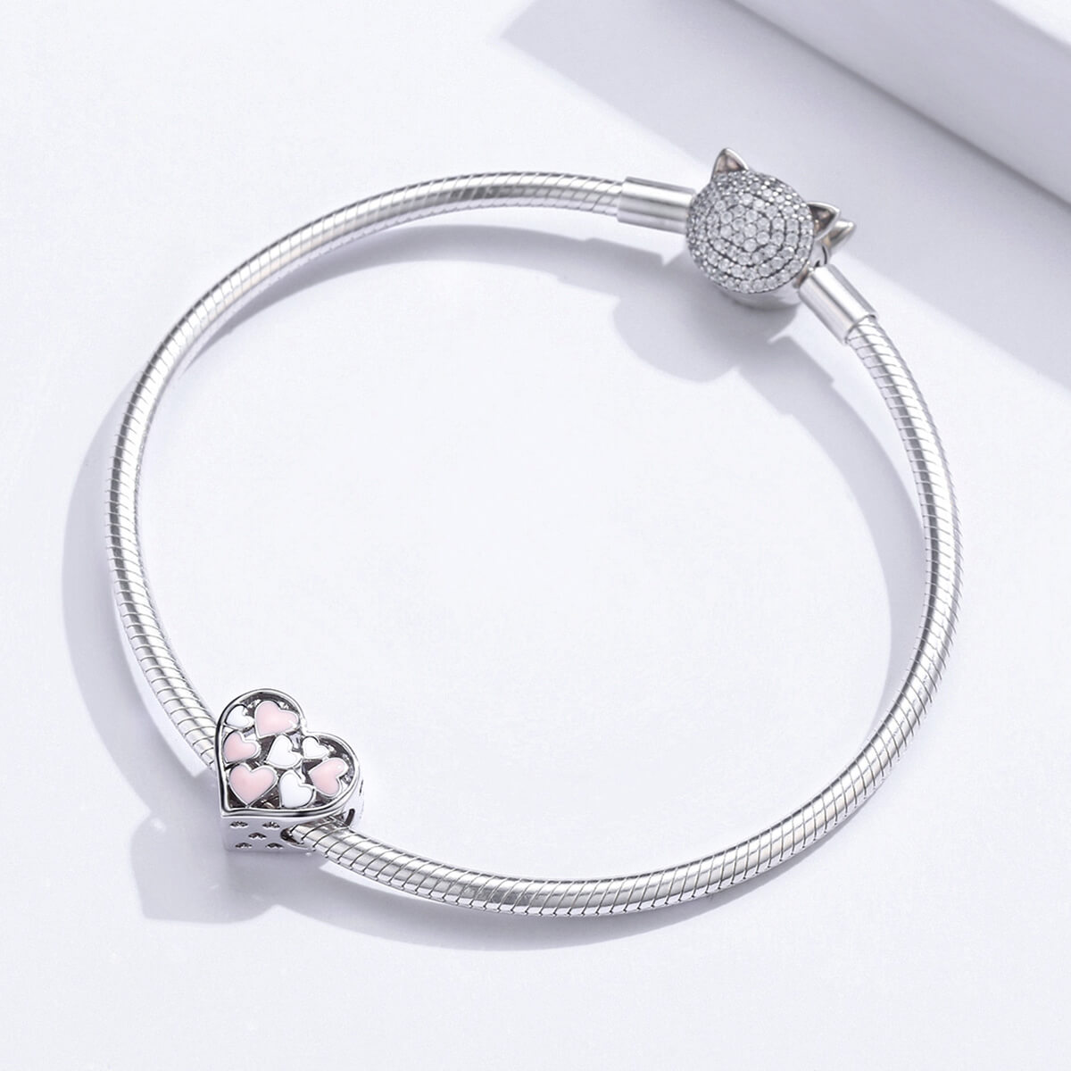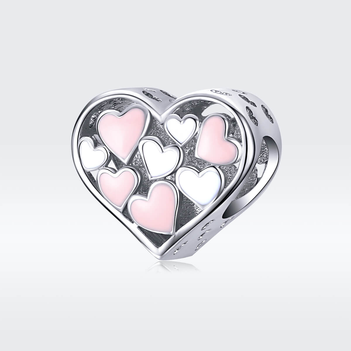 Fehér és rózsaszín szívekkel teli szív. Tökéletes kiegészítője lehet charm karkötődnek.