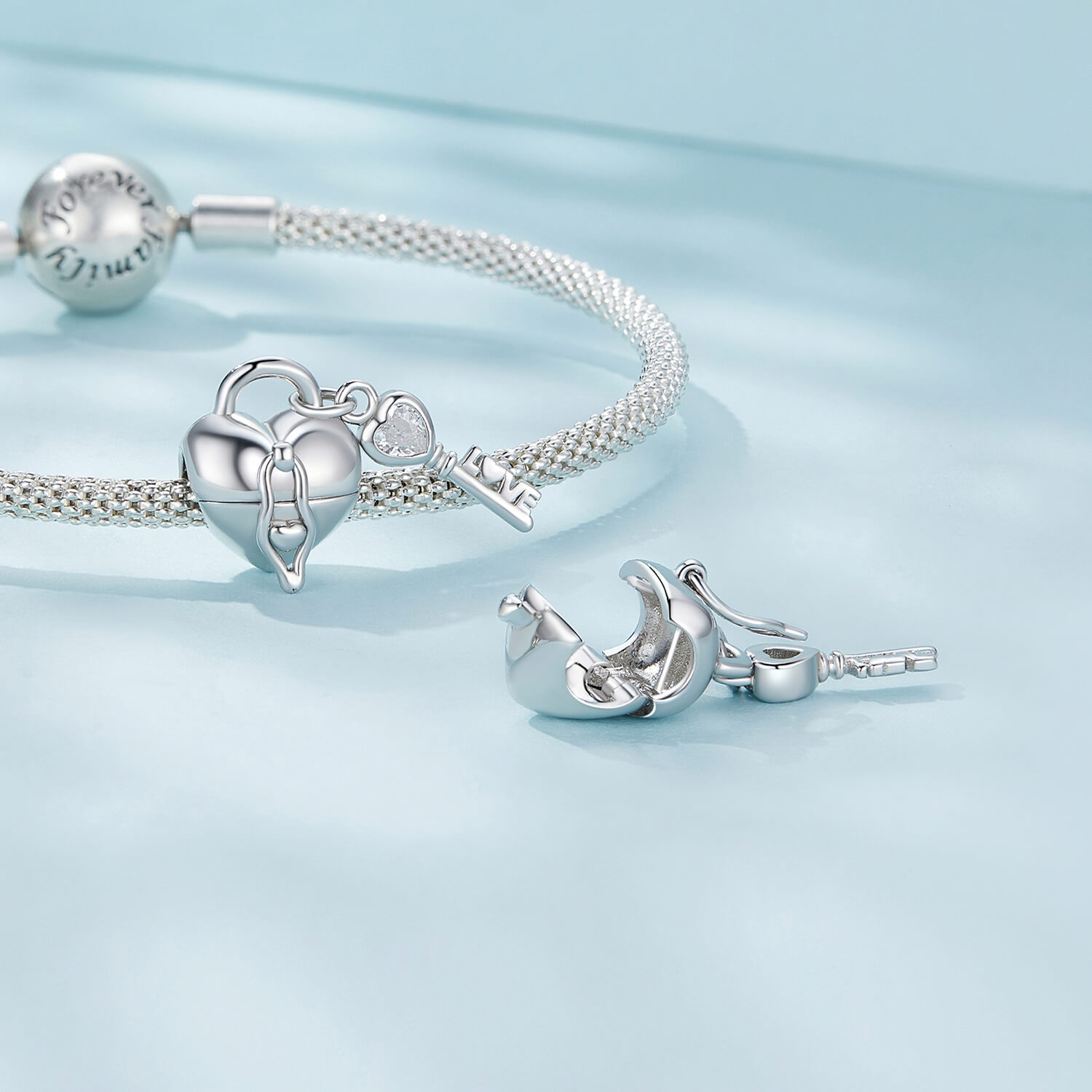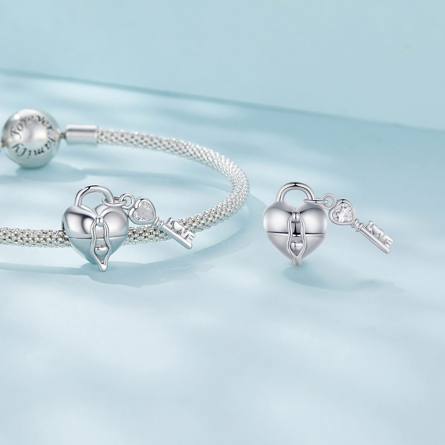 A szív formájú lakat és a hozzá tartozó kulcs az örökre összetartozást szimbolizálja. Tökéletes kiegészítője lehet charm karkötődnek.
