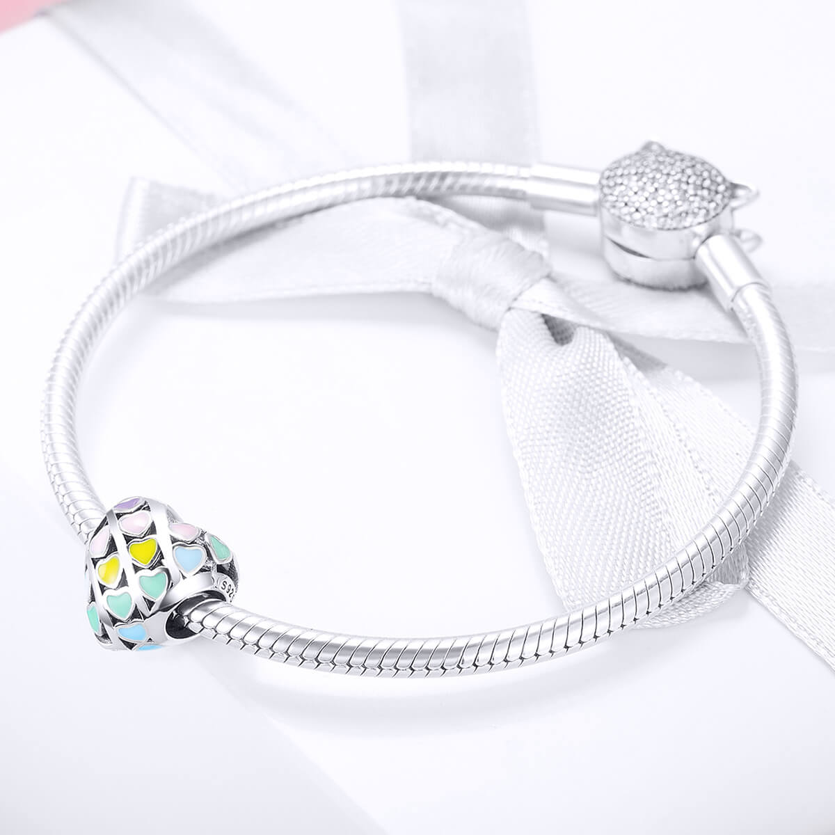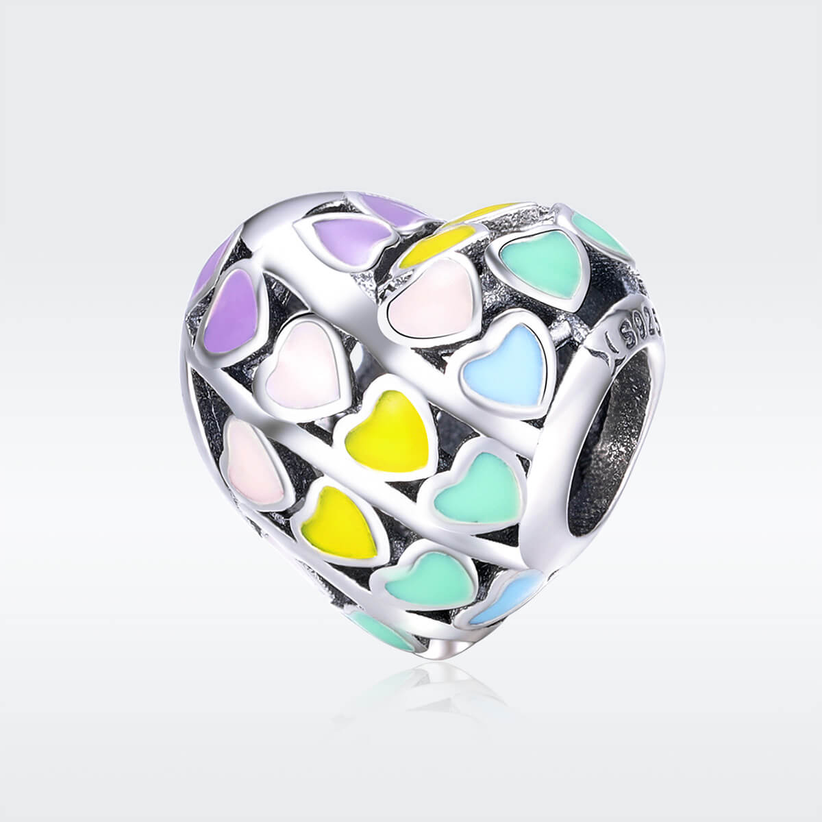 925 Ezüst charm – Szivárvány szívek
