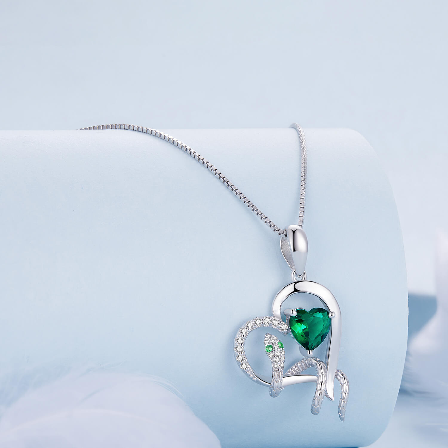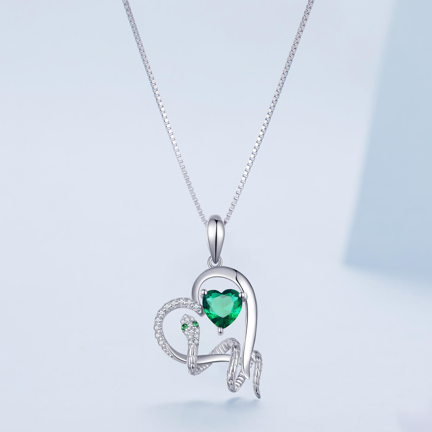 Igazán különleges darab, a kígyó rátekeredve a szívre és gyönyörű zöld ezüst cirkónia kristályokkal van díszítve.