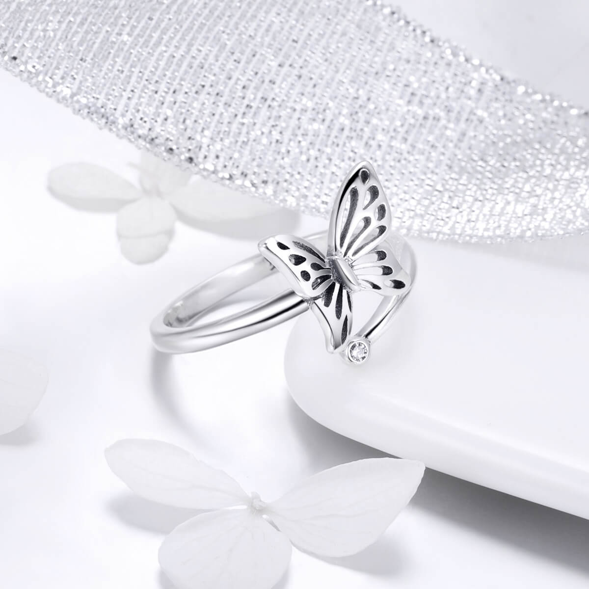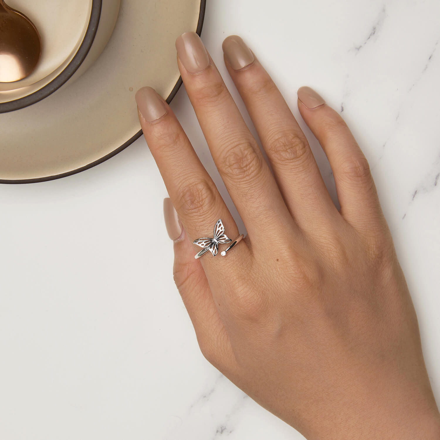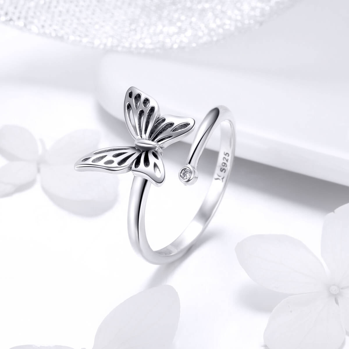 Különleges, letisztult darab. A pillangó a lélek fejlődését szimbolizálja. Mérete állítható.