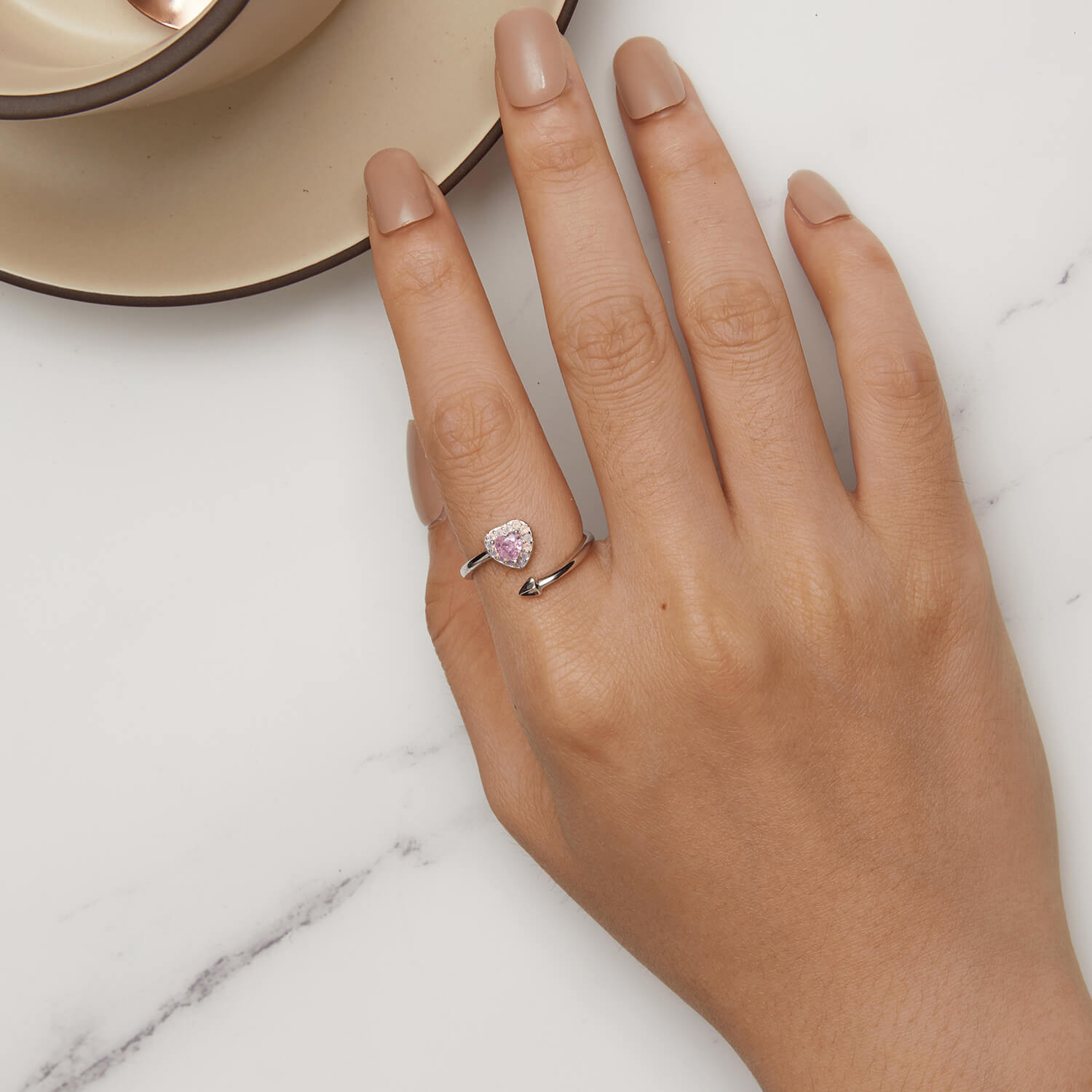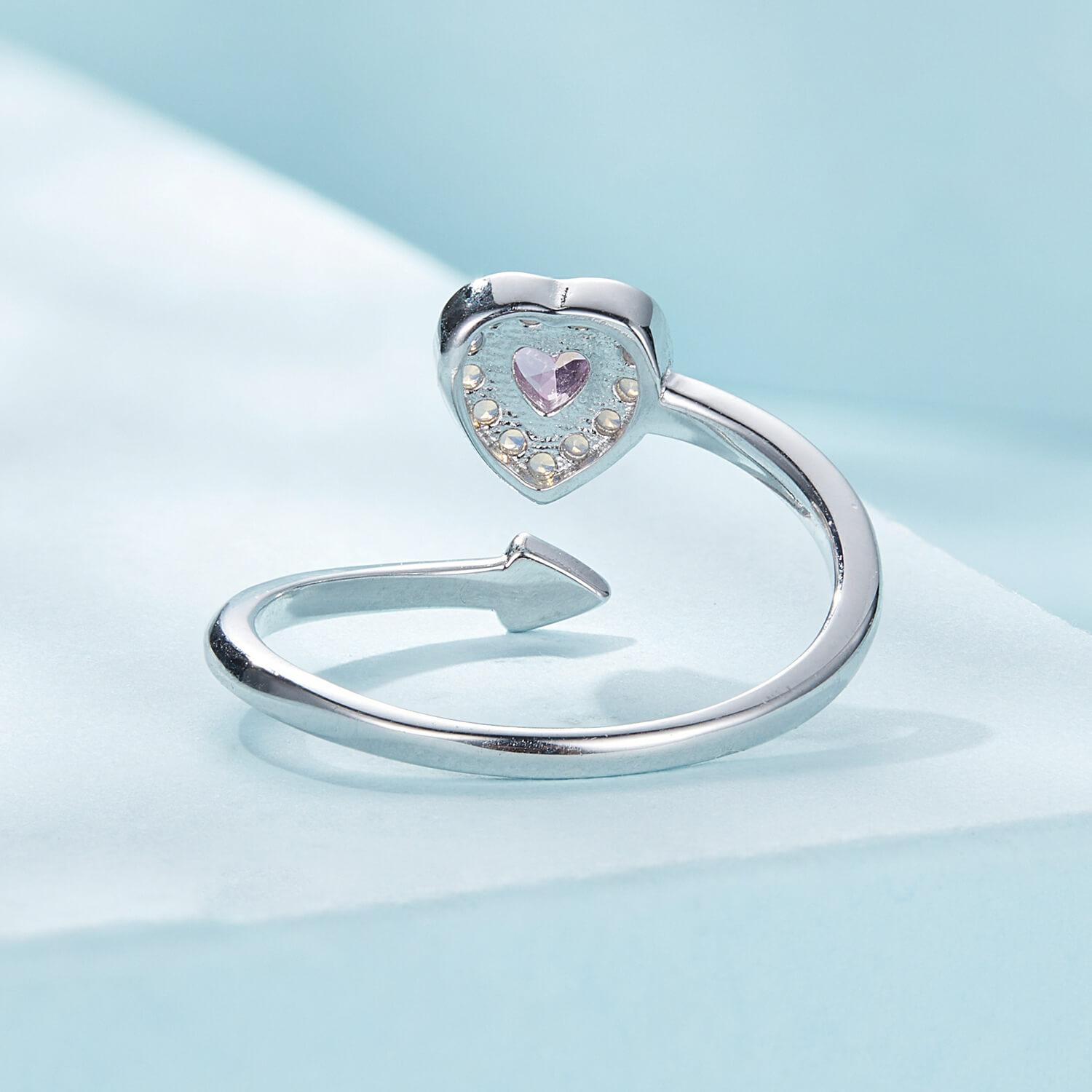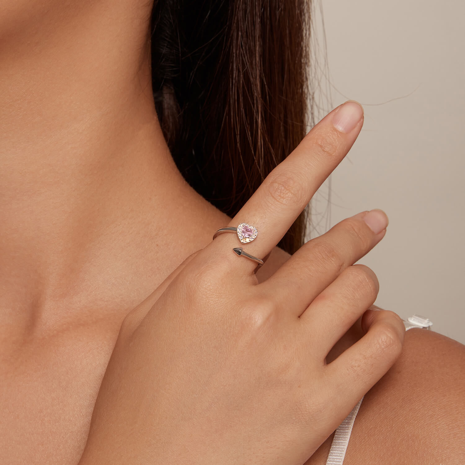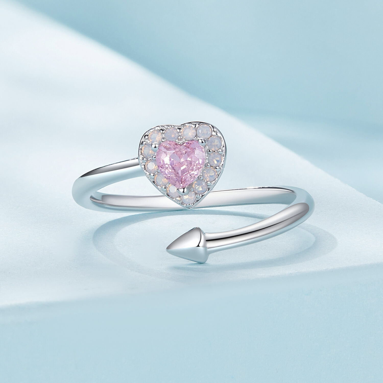 Gyönyörű szép szív forma, rózsaszín és ezüst ragyogó cirkónia kristályokkal díszítve. Mérete állítható.