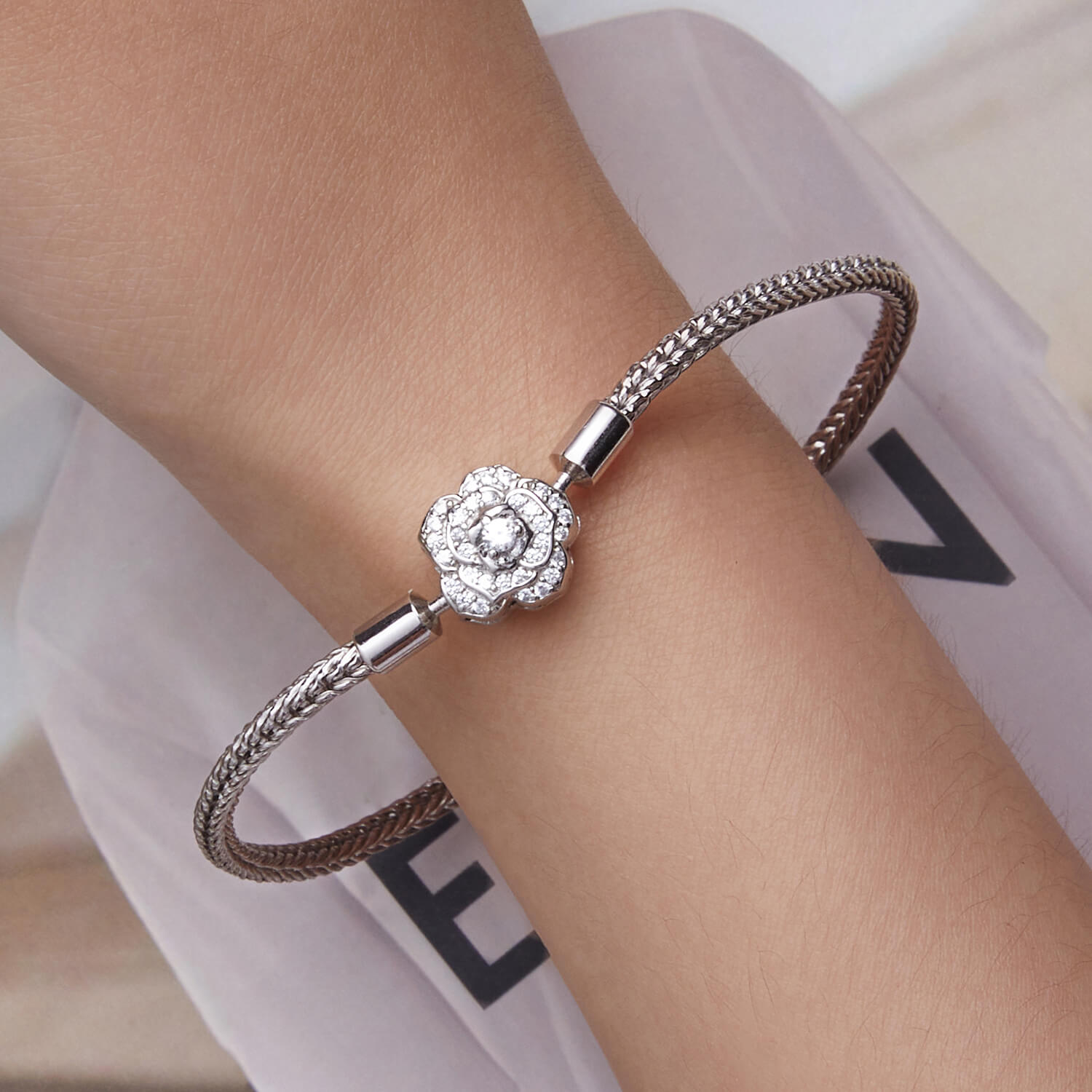 Gyönyörűen csillogó ezüst cirkónia kristályokkal van díszítve. További charmokkal még különlegesebbé és egyedibbé teheted.