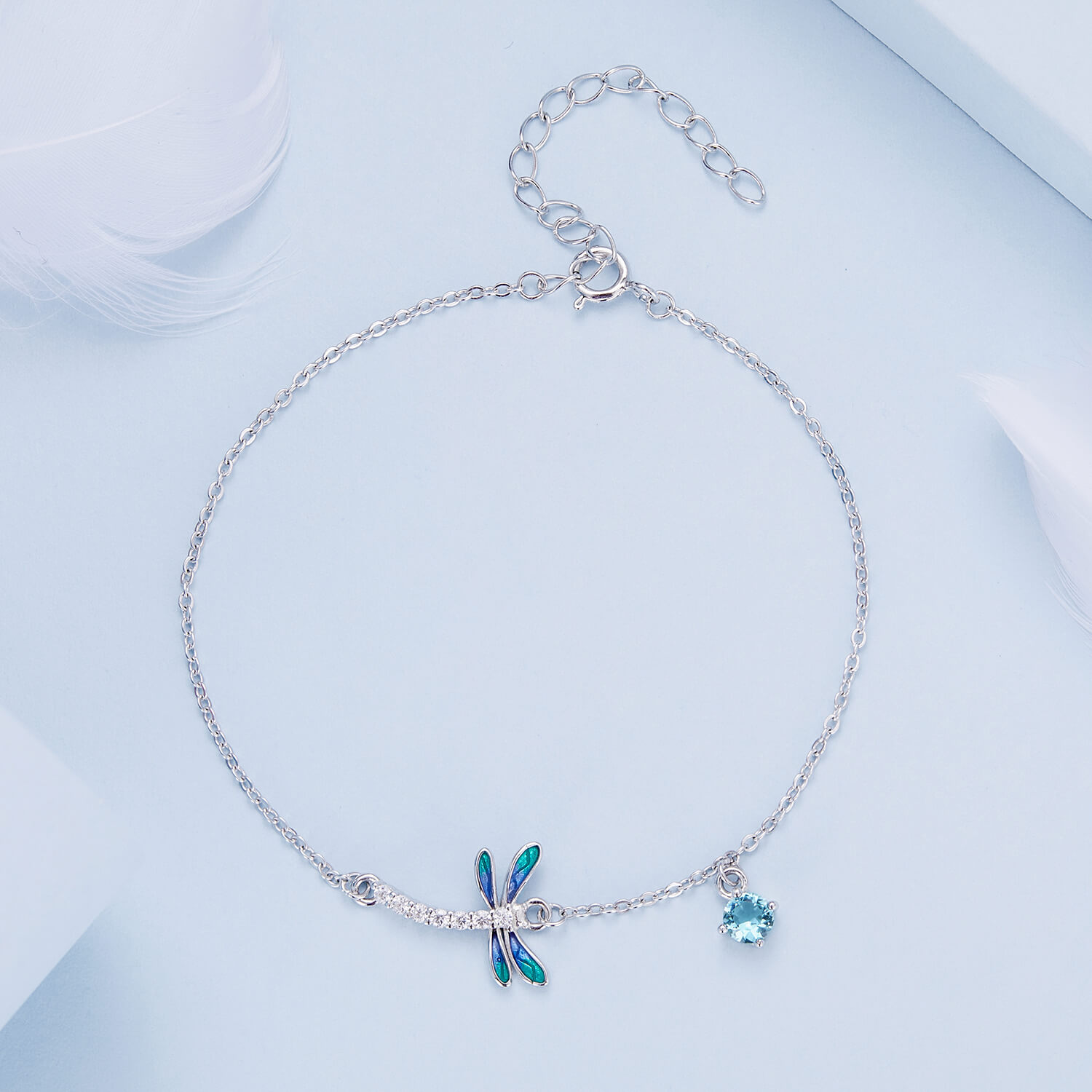 A szitakötő az új fény és az öröm jelképe, segít az átalakulásban, hiszen ő maga a változás. Gyönyörű szép kék színű, cirkónia kristályokkal díszítve. Állítható mérete miatt a te csuklódra is tökéletesen illeszkedni fog.