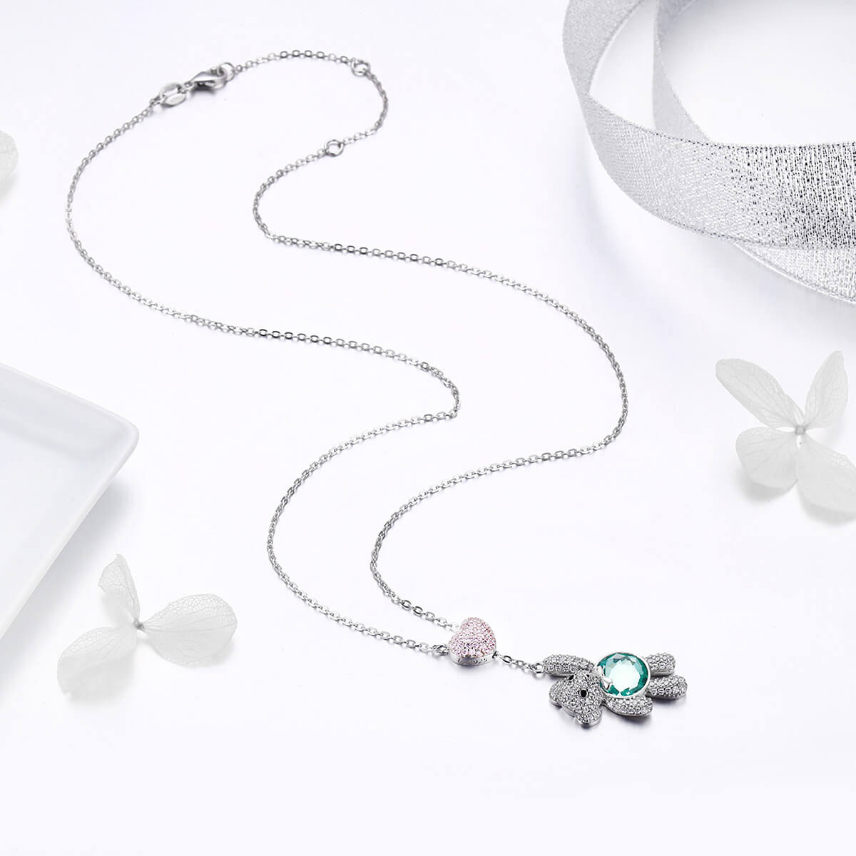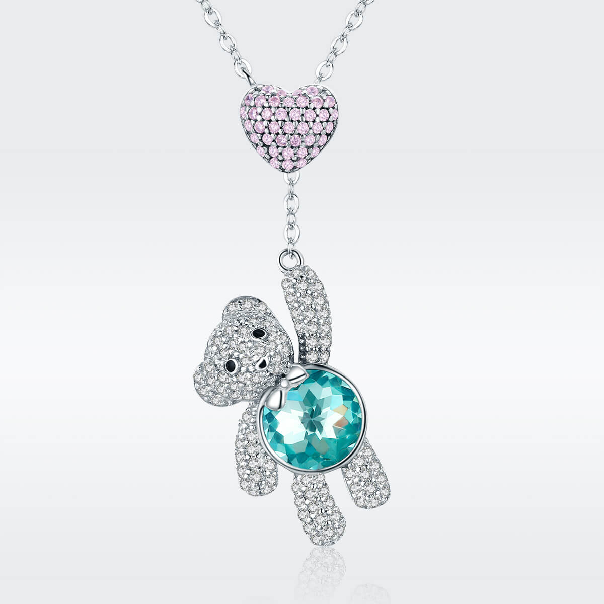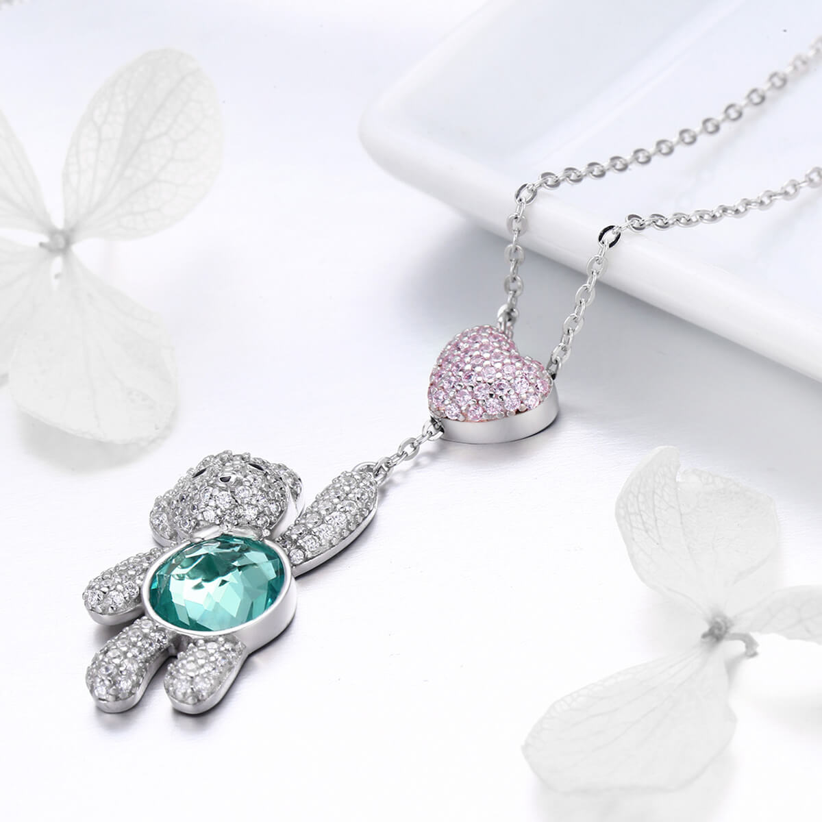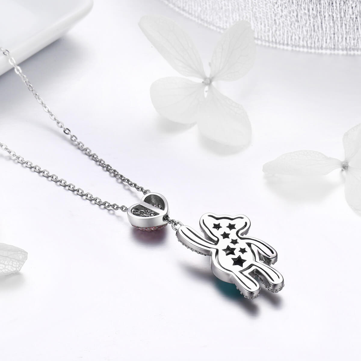 Igazán különleges és egyedi darab. Aranyos kis maci, mely egy szív alakú léggömböt tart. Ragyogó cirkónia kristályokkal van díszítve.