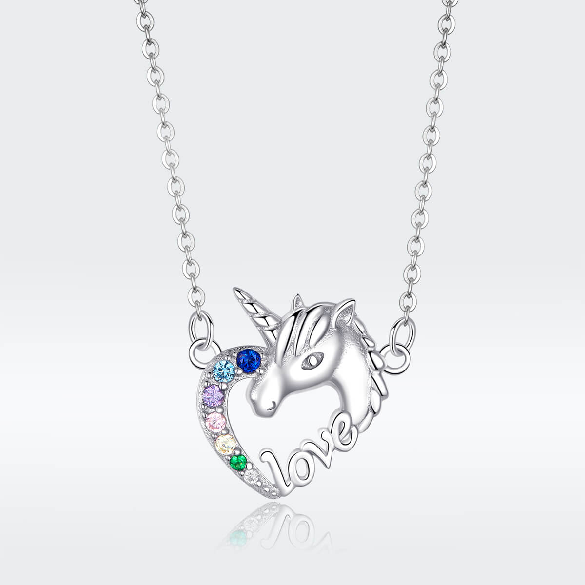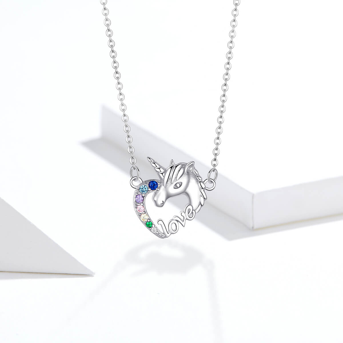 Tökéletes választás az unikornis kedvelőknek. „Love” felirattal és színes cirkónia kristályokkal díszítve.