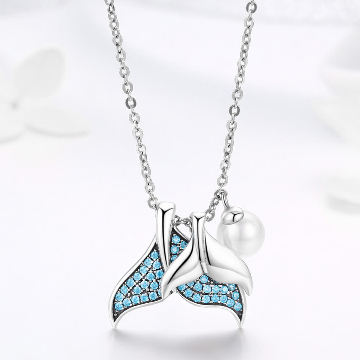 Fehér gyöngy díszítéssel és gyönyörű kék cirkónia kristályokkal díszített uszony. Igazán egyedi darab.