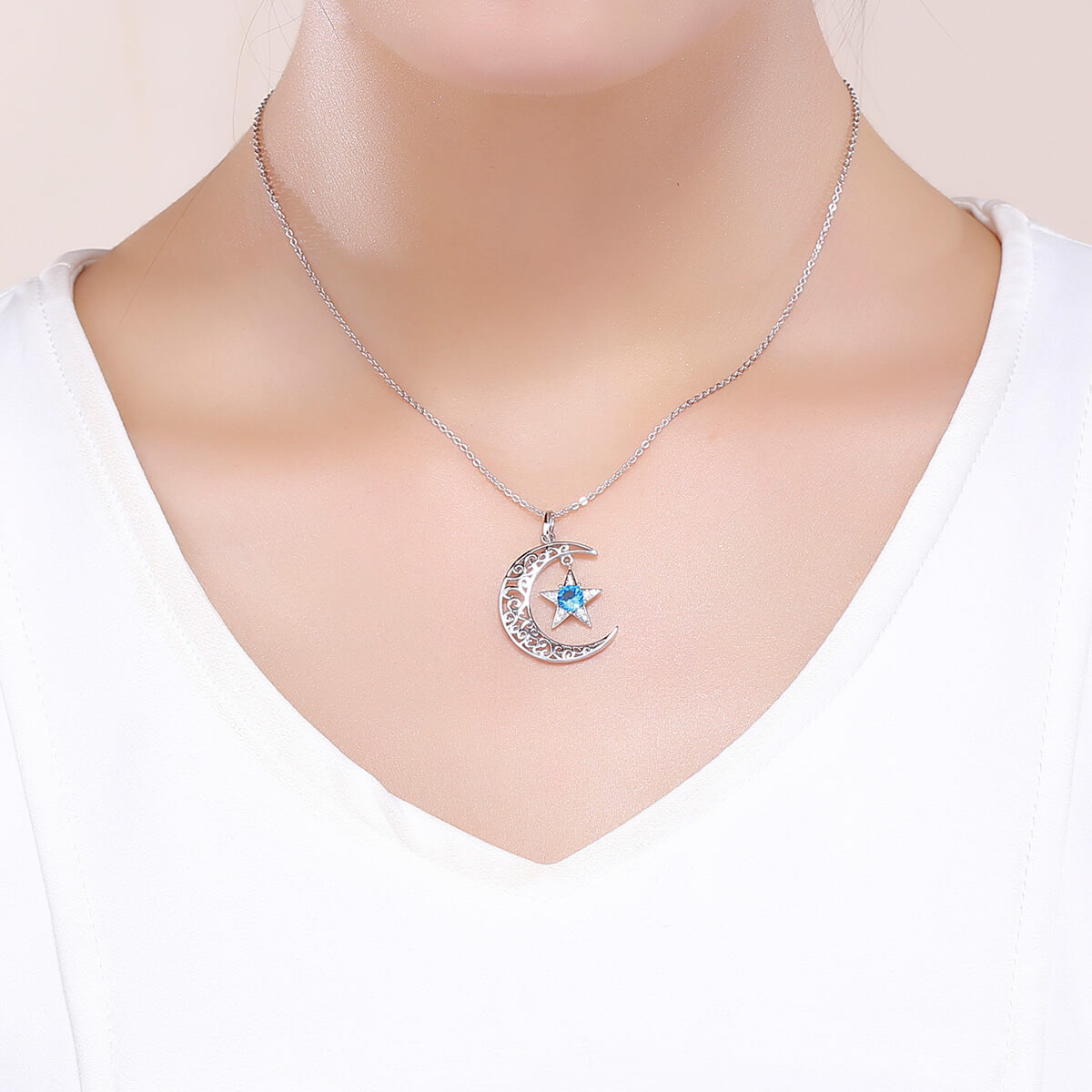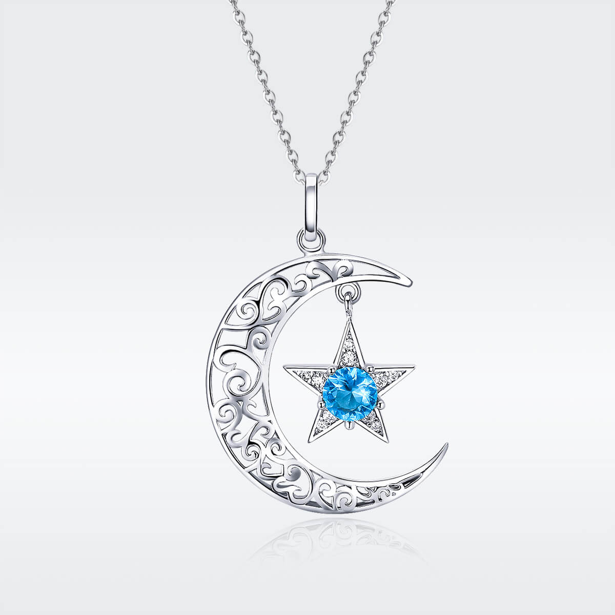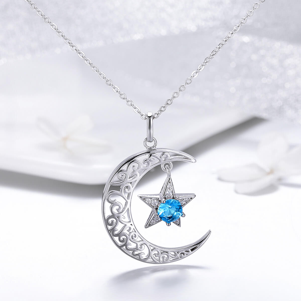 Csillogó hold és csillogó kék csillag. Tökéletes választás az égbolt szerelmeseinek.