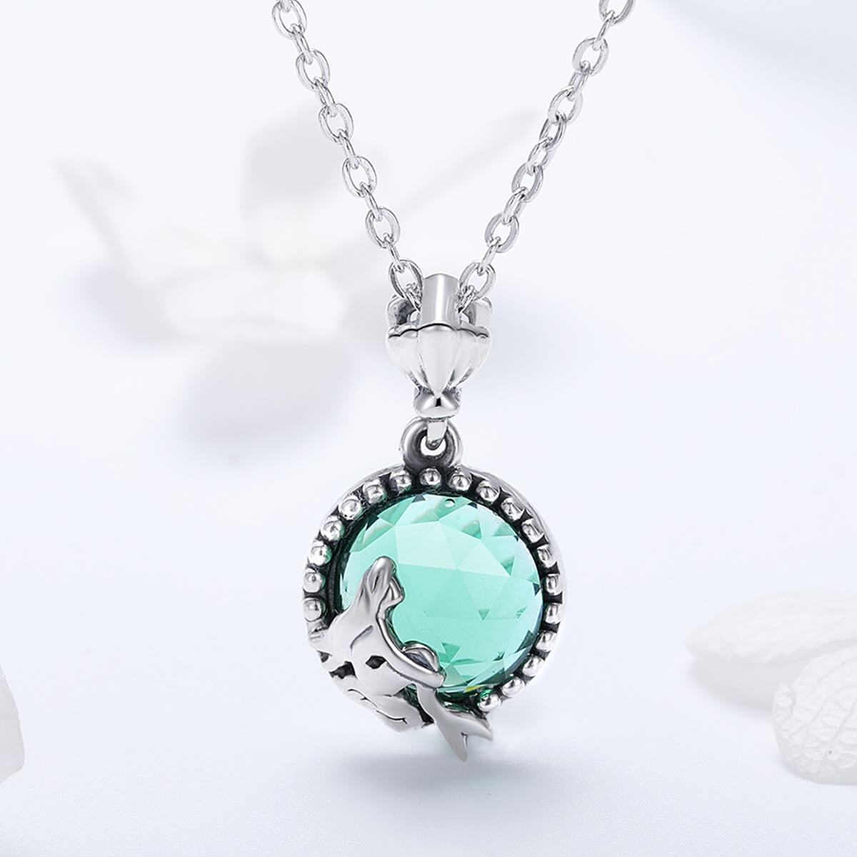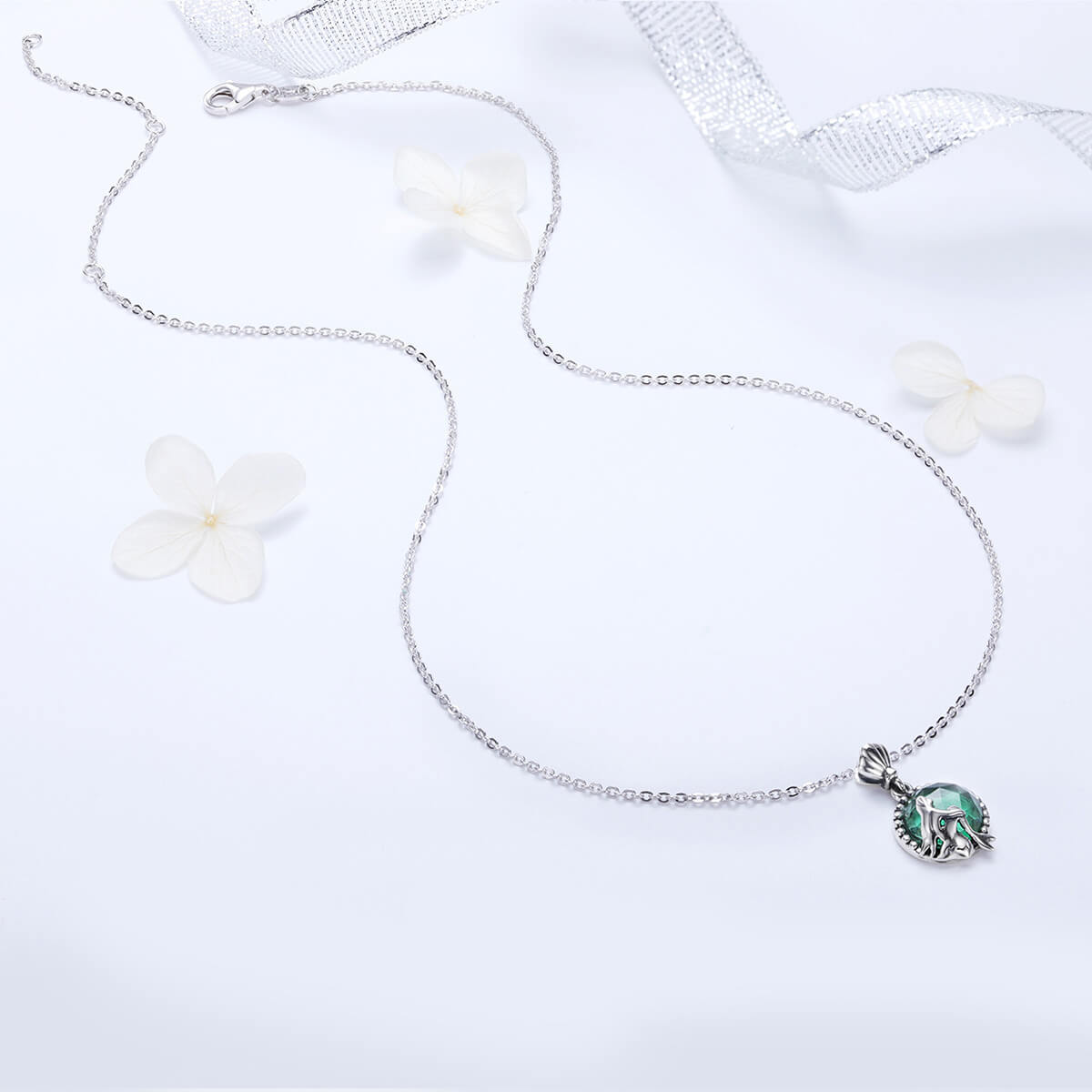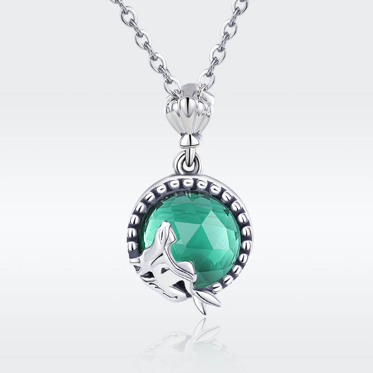 Gyönyörű zöld gömb, rajta egy sellővel. Igazán szép ékszer.