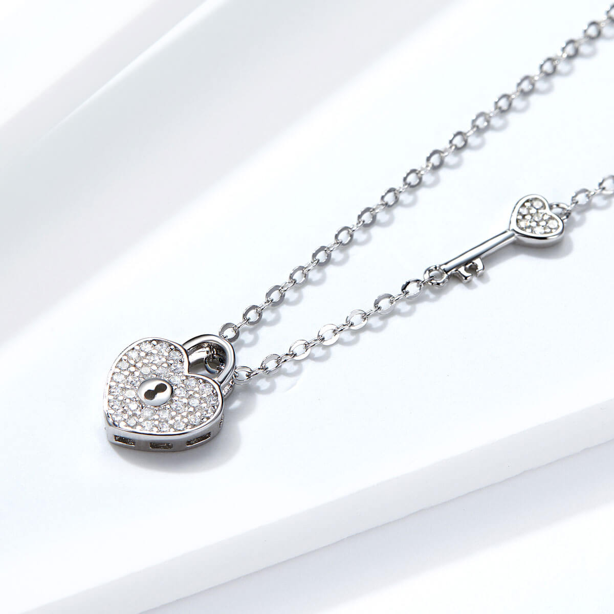 Igazán különleges. Gyönyörű szép csillogó lakat és a hozzá tartozó kulcs is ott díszeleg a nyakláncon. Cirkónia kristályokkal van díszítve.