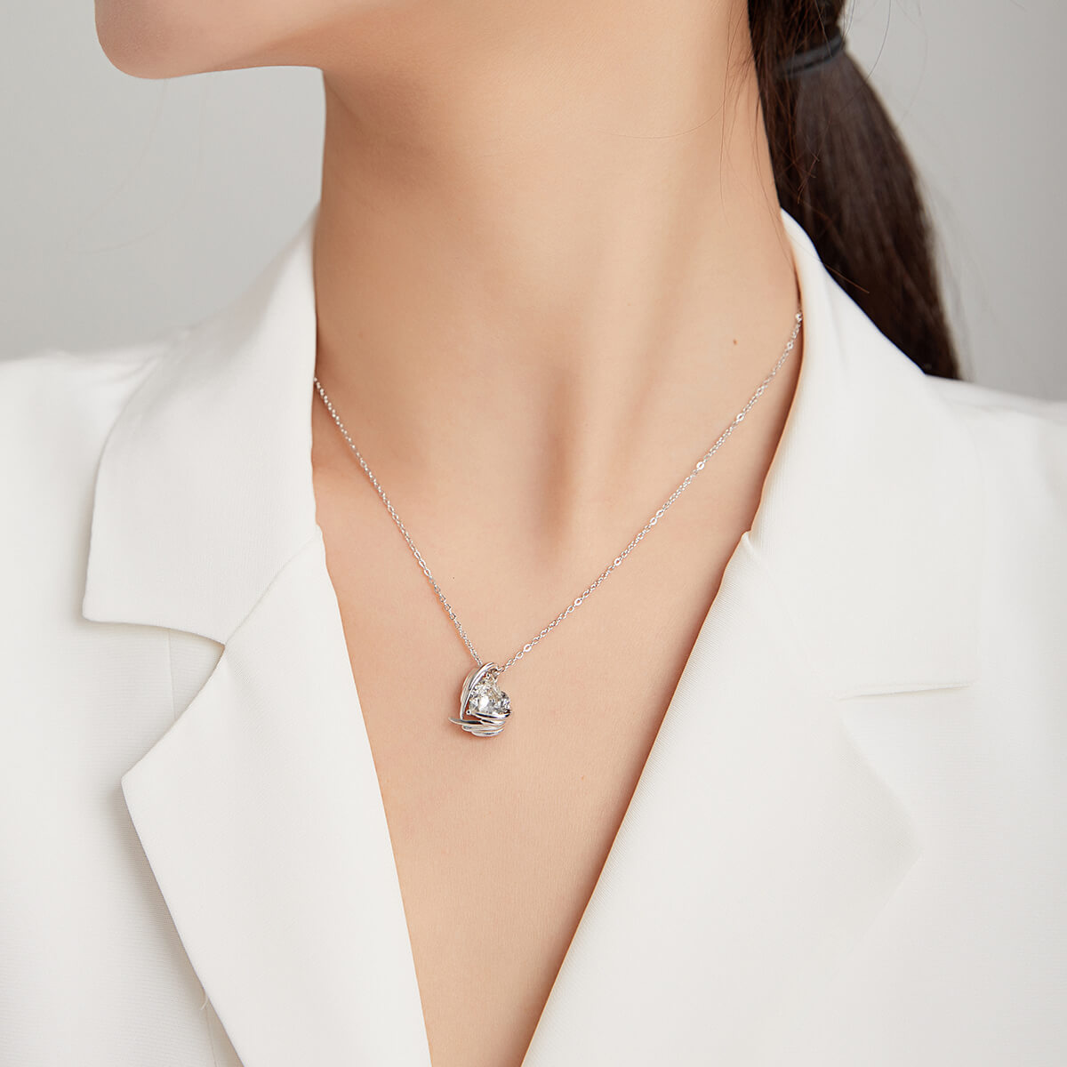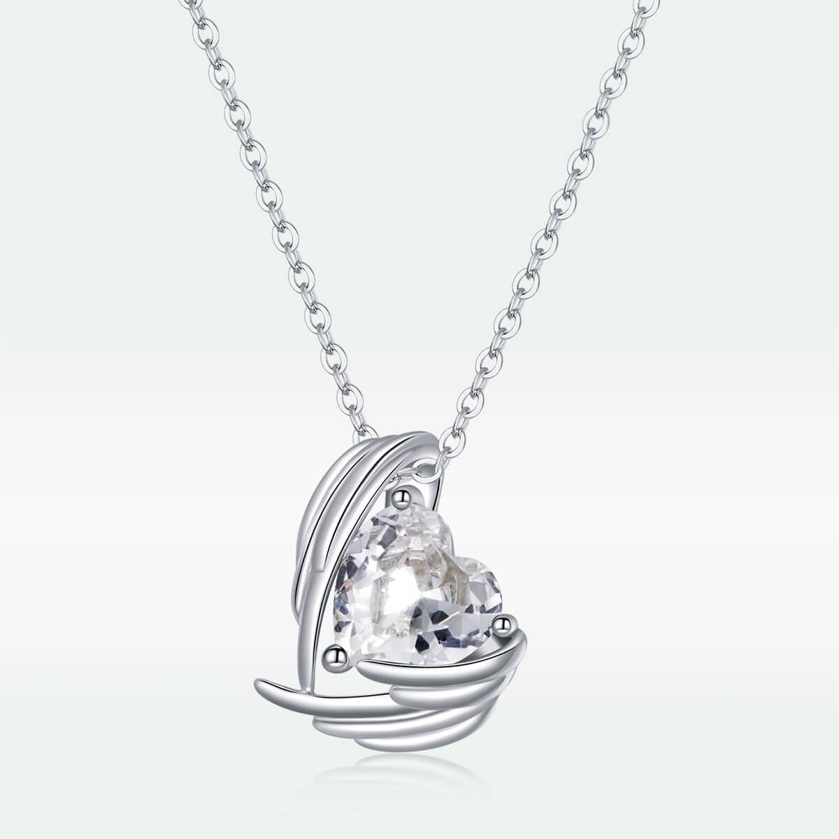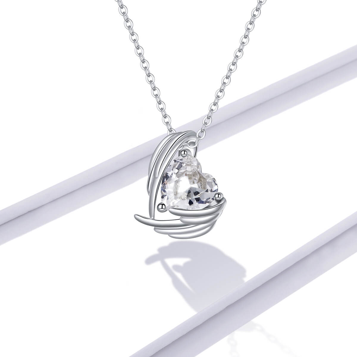 Különleges angyal szárnyakba foglalt szív nyaklánc. Csillogó cirkónia kristályokkal van díszítve.